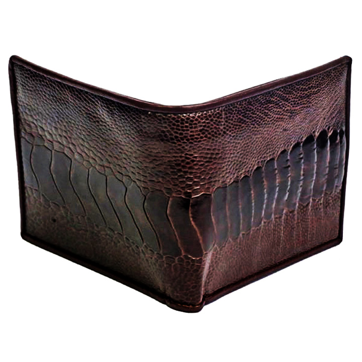 Bóp/Ví da đà điểu Huy Hoàng da bụng kiểu đứng màu nâu đất, nâu đỏ, đen, vàng bò 2408-09-10-18