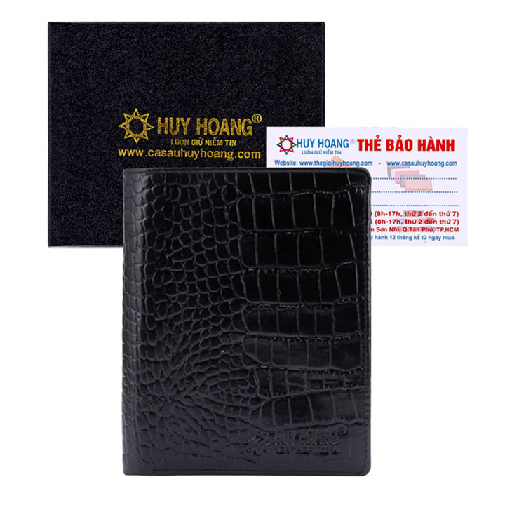 Bóp/Ví da cá sấu Huy Hoàng kiểu đứng màu đen, nâu đỏ, vàng bò, nâu đất 2228-29-30-48
