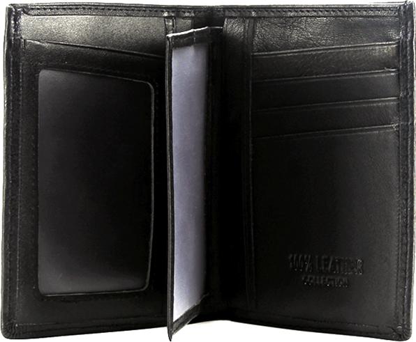 Ví/Bóp nam Huy Hoàng da bò kiểu đứng sọc ngang màu đen 2139