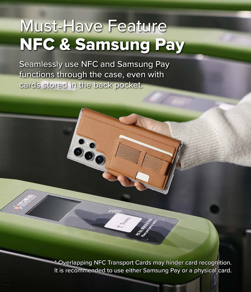 - Có thể sử dụng tính năng NFC và Samsung Pay dễ dàng ngay cả khi cất thẻ ở ngăn sau.