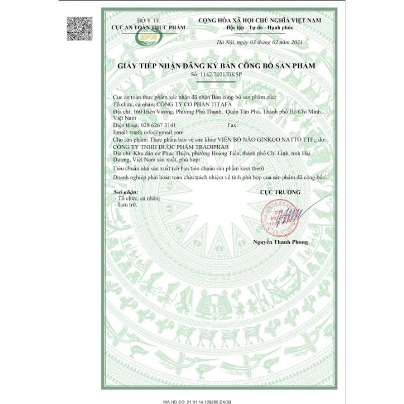 Mua tại TiktokVIÊN BỔ NÃO GINKGO NATTO TTF Thành phần: Ginkgo Biloba Extract Cao Đinh Lăng Nattokinase Coenzym Q10 Cao Lạc tiên Melatonin Fish Oil (Dầu cá) Magie Oxide Công dụng: