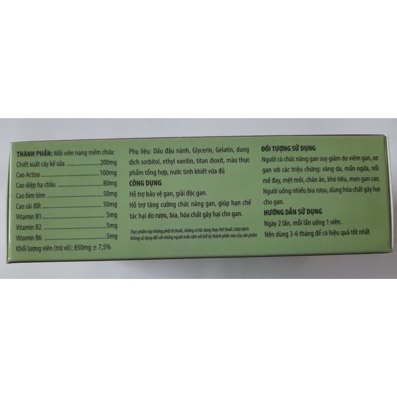 Hỗ trợ mát gan, hỗ trợ giải độc và bảo vệ gan, tăng cường chức năng gan Hỗ trợ giảm nguy cơ tổn thương gan do bia rượu, hóa chất độc hại Thành phần: Cao