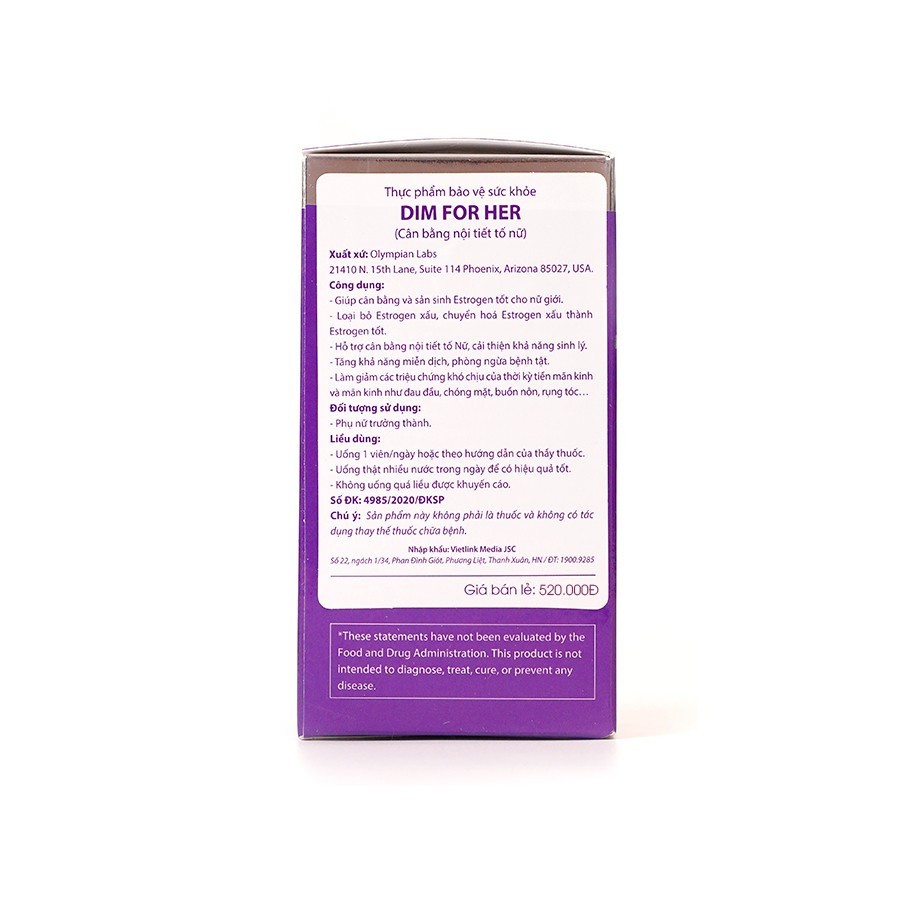 VIÊN UỐNG NỘI TIẾT TỐ NỮ DIM FOR HER OLYMPIAN LABS CÔNG DỤNG - Hỗ trợ cải thiện nội tiết tố estrogen cho phụ nữ, giảm các triệu chứng do thiếu hụt nội tiết tố.
