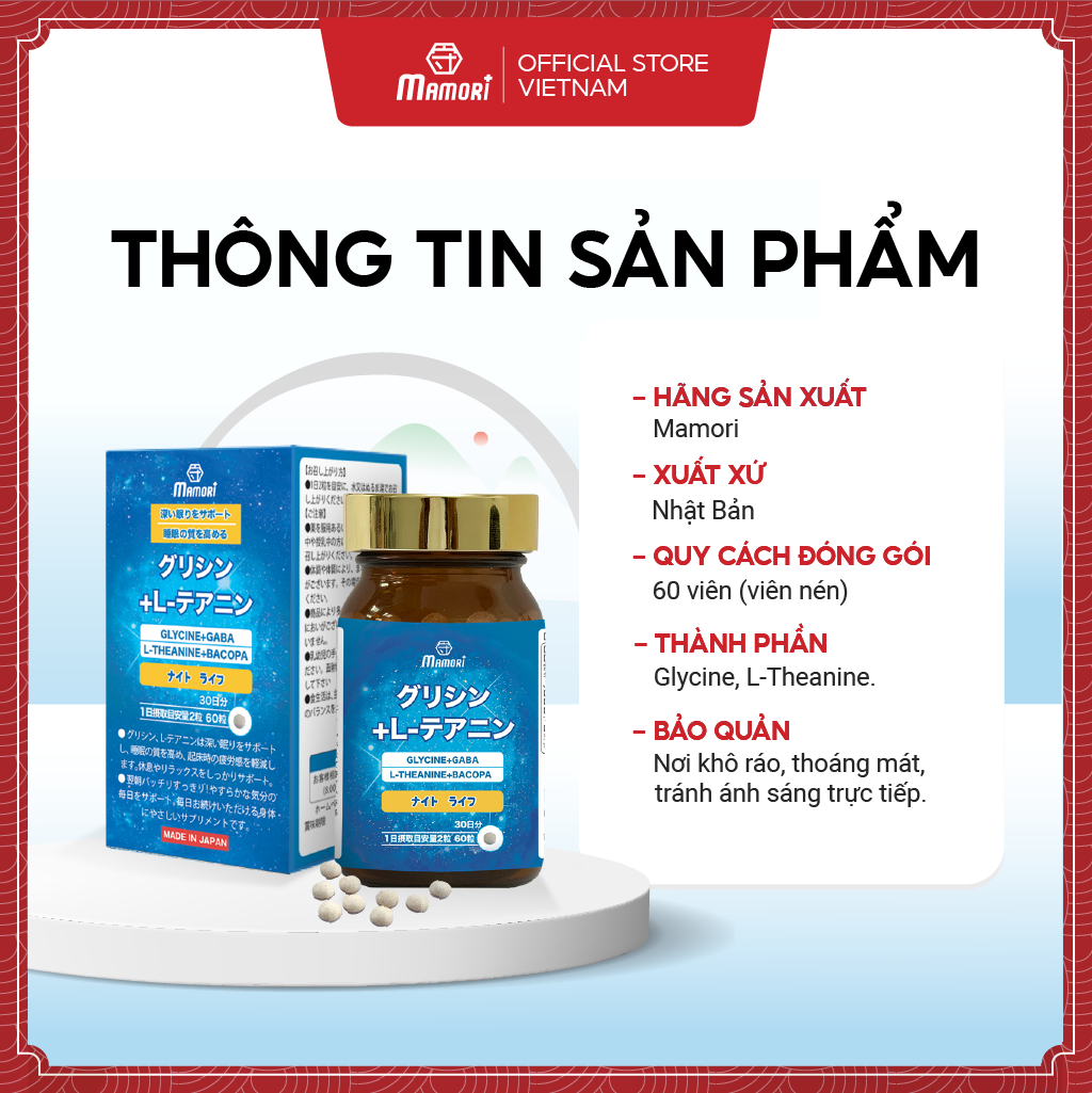 • Tên sản phẩm: Viên uống Mamori Glycine + L-theanine