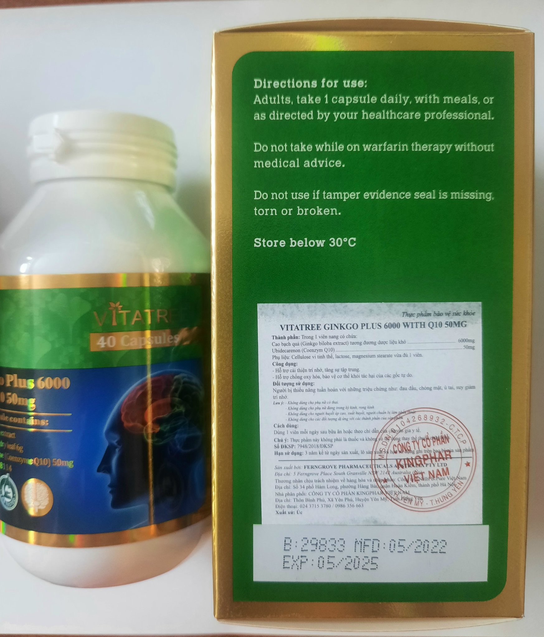 Nhãn hiệu dược phẩm nổi tiếng của Australia đã phát triển Thuốc Bổ Não Vitatree Ginkgo với hàm lượng bạch quả cao giúp máu lưu thông tốt, điều hoà mạch máu & tăng lưu lượng máu, và do đó có thể làm tăng dinh dưỡng tế bào, đặc biệt là tế bào não. Chiết xuất từ cây bạch quả còn hỗ trợ và giúp bình thường hóa lưu thông mạch máu vì nó có tác dụng thư giãn (giãn mạch) vào động mạch, làm săn chắc và đàn hồi phần da trên tĩnh mạch. Việc cải thiện lưu thông máu có thể giúp tăng cường sử dụng oxy và glucose trong cơ thể.