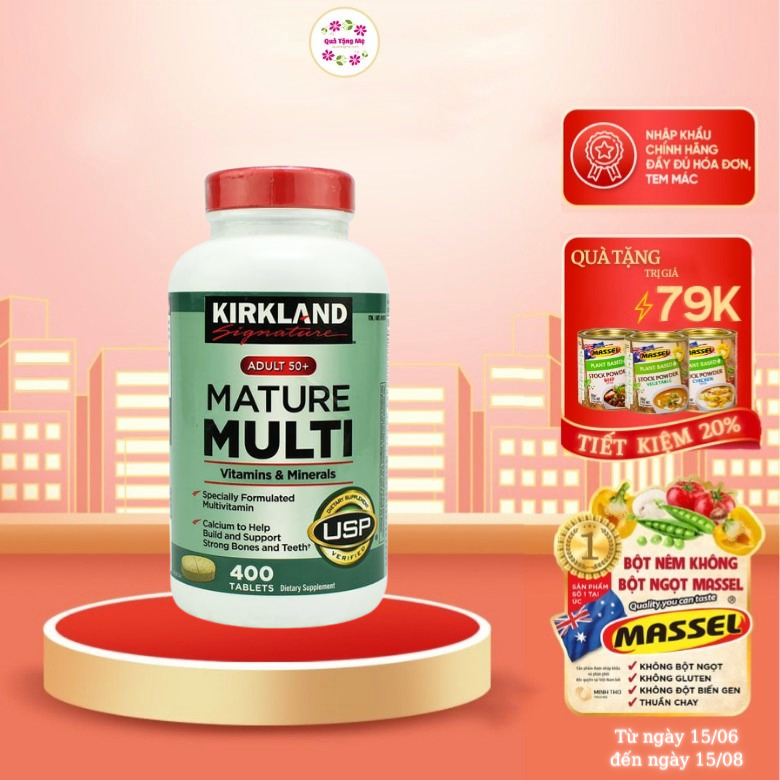 ✨Vitamin tổng hợp Kirkland Mature Multi Adult 50+ Hộp 400 viên của Mỹ - dành cho nam, nữ trên 50 tuổi, Tăng cường miễn dịch, phòng bệnh tật, đặc biệt là các bệnh lây nhiễm, bệnh do virus, vi khuẩn - QuaTangMe Extaste