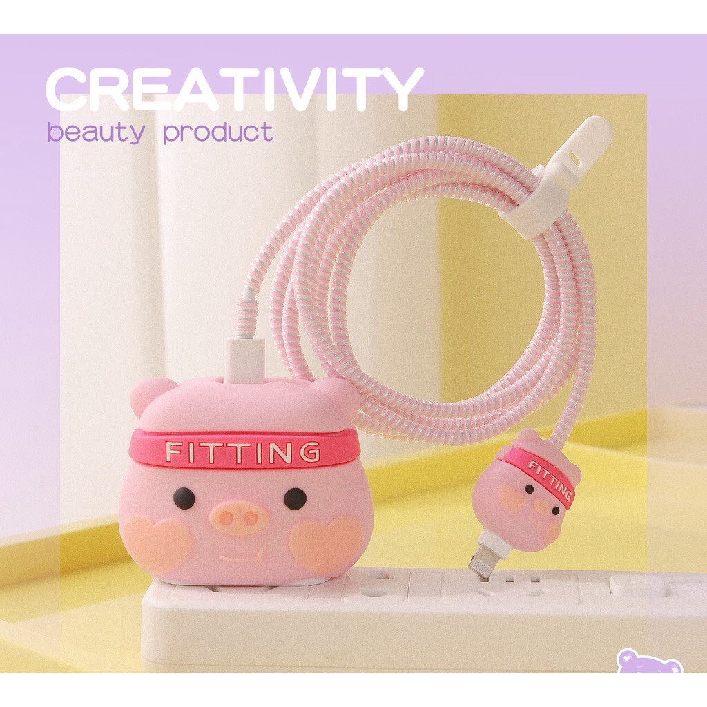 Bộ phụ kiện bảo vệ cáp và củ sạc bằng silicon hình hoạt họa dễ thương cho bộ sạc iPhone 18W và 20W 1