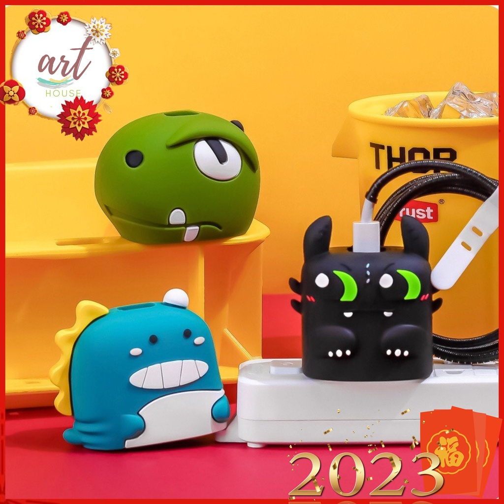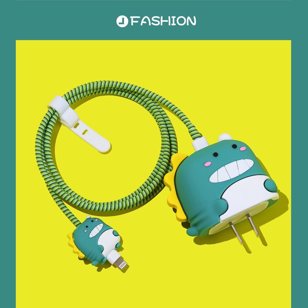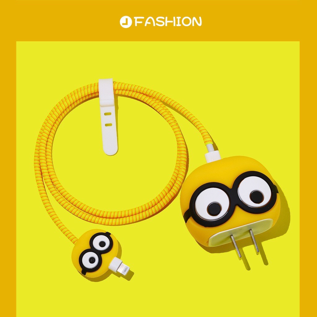 Bộ phụ kiện bảo vệ cáp và củ sạc bằng silicon hình hoạt họa dễ thương cho bộ sạc iPhone 18W và 20W
