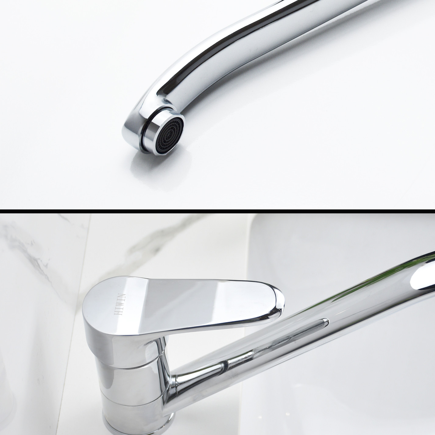 Mẫu vòi KF-213 của Hiwin với thiết kế đơn giản, thông minh sẽ mang lại cho bạn trải nghiệm tiện nghi nhất. Phần đầu vòi dễ dàng chạm đến mọi góc cạnh chậu rửa, tay gạt xoay vặn êm ái, dễ dàng cho cả trẻ nhỏ sử dụng.