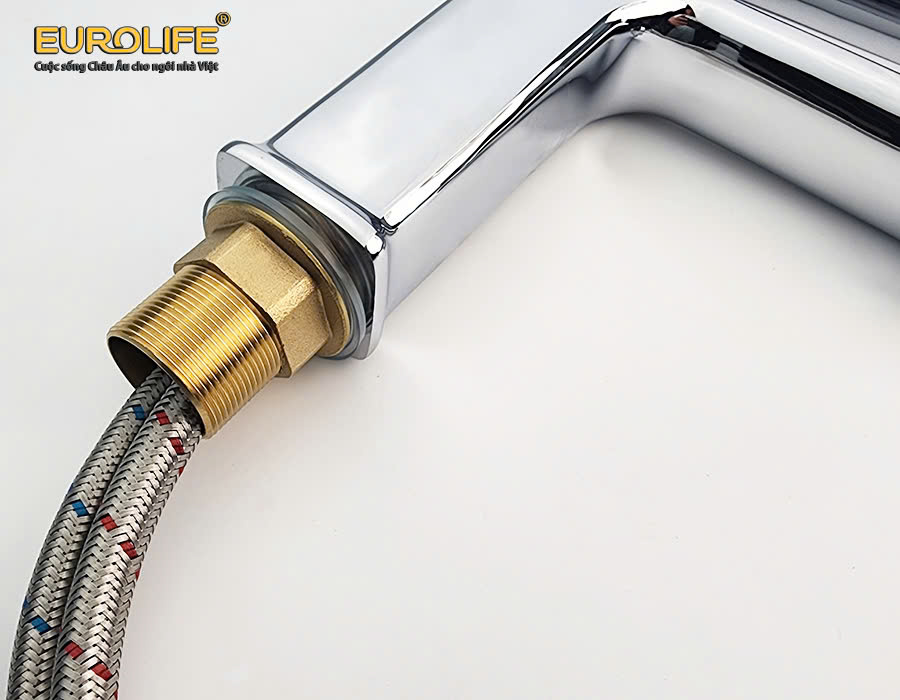 Vòi Lavabo nóng lạnh Đồng mạ Chrome Eurolife EL-8002 ️Thương hiệu Eurolife Việt Nam  ️ Chất liệu : Sản phẩm được đúc trọng lực với hợp kim đồng 61% , mạ Chrome và Niken (Ni -10micro , Cr-0.3micro). Độ bóng sáng cao và không bị dính két vết bẩn.  ️ Màu sắc : Trắng bạc ( Crôm Bóng sáng) ️Trọng lượng : 1006Grs  ️Bảo hành : 5 năm  ️Sản phẩm chất lượng cao, không bong tróc lớp men (lớp mạ) khi sử dụng trong thời gian dài. Tuổi thọ lớp men lên tới 20 năm.  CHI TIẾT SẢN PHẨM ===================  CHẤT LIỆU AN TOÀN      ️ Thân vòi được đúc từ Đồng H61, đạt tiêu chuẩn Châu Âu cho vật liệu. An toàn cho người sử dụng và thân thiện với môi trường.  MẠ CHROME 5 LỚP ️ Thân vòi được mạ 5 lớp với 1 lớp mạ Đồng, 2 lớp mạ Kẽm, 1 lớp mạ Niken bên trong và lớp Chrome bên ngoài với độ dày lên tới 11um, giúp vòi luôn sáng bóng và không bị nổ xi, bong tróc lớp mạ khi sử dụng ( Đã được Quatest 3 chứng nhận).  THIẾT KẾ ƯU VIỆT ️ Thân vòi với chiều cao, tạo cảm giác thoải mái, phóng khoáng khi sử dụng. Thuận tiện khi rửa mặt và xả nước.  CÔNG NGHỆ TẠO BỌT DÒNG CHẢY ️ Đầu vòi với thiết kế dòng nước đan chéo xen kẽ nhau, tạo bọt, chống văng bắn và tiết kiệm nước. ️ Đầu vòi có thể tháo rời để vệ sinh lưới lọc bên trong khi cần thiết.  ️ Áp lực nước mạnh mẽ, không văng bắn khi sử dụng. ️ Thân vòi cao với thiết vuông, tạo cảm giác khỏe khoắn và sang trọng cho phòng tắm. ️ Tay cầm thiết kế vuốt vuông, dễ cầm nắm, giúp đóng mở nguồn nước dễ dàng. Logo Eurolife được in trên tay cầm cùng tem điện tử thông minh chống hàng giả, có thể truy xuất nguồn gốc được dán sau lưng sản phẩm.  BÁT GẮN VÀ DÂY KẾT NỐI ️ Bát gắn bằng Đồng thau bền bỉ, Ren gắn 32mm, phù hợp với các loại lỗ chờ của Lavabo. Bát siết có đường kính 44mm. ️ Chiều dài ống gắn 46mm, có thể gắn cho nhiều mặt đá dày. ️ Bát gắn bằng chắc chắn và cứng cáp cho việc lắp đặt, đi kèm 2 roong cao su đệm bên trên và bên dưới thành chậu. ️ Dây cấp dài 50cm chịu nhiệt cao. Thân dây bằng Inox, 2 đầu ren được đúc bằng Đồng thau bền bỉ. Hai dây hoàn toàn có thể chịu nhiệt độ cao lên đến 100 độ C. Ống dẫn được làm từ cao su tổng hợp EDPM .Cao su EPDM có dãy nhiệt độ làm việc từ -50° C tới 120°/ 150°C (- 60° F tới 250°/ 300°F). Tính chất nổi bật của loại vật liệu EPDM là nhờ khả năng kháng được rất tốt với các loại dung môi, axit loãng, kiềm loãng, hơi nước, ánh sáng mặt trời, tác động của tia ozon và làm việc được trong môi trường nhiệt độ cao.  TRÁI TIM SẢN PHẨM ️ Eurolife sử dụng van Ceramic JJ - thương hiệu nổi tiếng và chất lượng cao của Đài Loan cho các sản phẩm. Van Ceramic với 160.000 lần sử dụng (tương ứng với 30 lần sử dụng trên ngày trong suốt gần 15 năm liên tục). Van lớn được thiết kế độc quyền bởi Eurolife cho dòng chảy tối đa 18l/min với áp suất 0.5MPA, giúp van chảy cực mạnh kể cả khi áp lực yếu.  THÔNG SỐ SẢN PHẨM ️ Trọng lượng thực tế của sản phẩm : 1006 Grs  BẢN VẼ KỸ THUẬT  ĐÓNG GÓI SẢN PHẨM ️ Bộ sản phẩm đầy đủ bao gồm : 1- Thân vòi Lavabo 2- Bộ 2 dây Inox SUS 304, 1 bát lắp đặt, 2 roong cao su 3- Sách hướng dẫn sử dụng kèm thẻ bảo hành  Sản phẩm của Eurolife đã được Trung tâm kỹ thuật tiêu chuẩn đo lường Chất lượng 3 (Quatest 3) phân tích thử nghiệm và chứng nhận: ️ Độ dày lớp mạ lên tới 11um.  ️ Tỉ lệ vật liệu đạt tiêu chuẩn