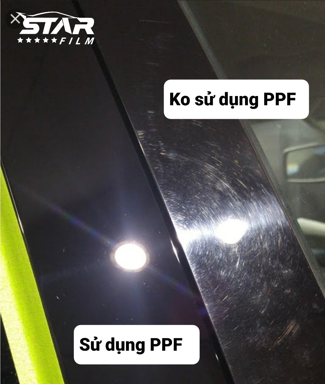 Tấm dán PPF TPU STAR FILMTấm dán PPF (Pain protection film) được thiết kế cho việc che phủ và bảo vệ lớp sơn xe và nội thất trong ô tô Với ưu điểm vượt trội khi dùng nguyên vật liệu gốc là high polymer TPU, tấm dán có khả năng tự hồi phụ các vết xước nhỏ và có khả năng biến dạng tốt, phù hợp bao phủ các bề mặt cong, phức tạp. Ngoài ra tấm dán có thể dễ dáng bóc ra thay thế mới và không ảnh hưởng dến lớp sơn của xe,Tấm dán PPF trụ bóng được sử dụng nguyên liệu đặc biệt có độ đàn hồi cao, dễ dàng hồi phục các vết xước nhỏ trong quá trình sử dụng và đặc biệt có khả năng chống ố vàng trong điều kiện thời tiết ở Việt Nam Nhà sản xuất bảo hành 10 năm tấm dán không bị bong, tuy nhiên khuyến cáo nên thay tấm dán mới sau 2 năm sử dụng để xe của bạn được đẹp hơn. Bộ sản phẩm thiết kế bao gồm :