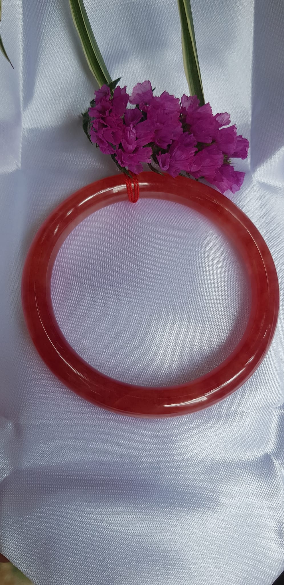 Vòng Cẩm Thạch Đỏ Đẹp A Ni 52mm x chột 7,8mm màu đỏ bông tươi sáng bóng đẹp nữ 52kg - 56kg đeo mệnh hỏa mệnh thổ đeo xuất sắc đẹp món quà tặng ý