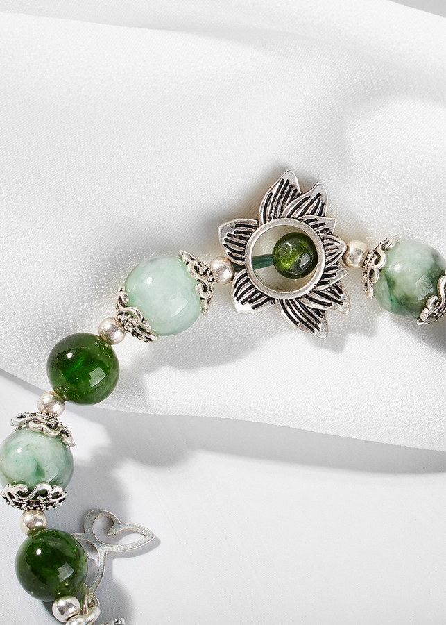 Vòng Thạch Anh Ưu Linh Xanh Phối Hoa Thạch anh xanh Đá Thạch Anh Xanh (Green Aventurine) còn được gọi là “Đá của Cơ Hội”, nó được cho là loại đá mang lại may mắn