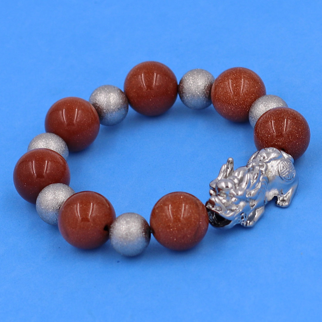 Thông tin sản phẩm : Vòng chuỗi đeo tay đá kim sa 14 ly ( size lớn ) charm tỳ hưu và bi inox, vòng tay chuỗi hạt