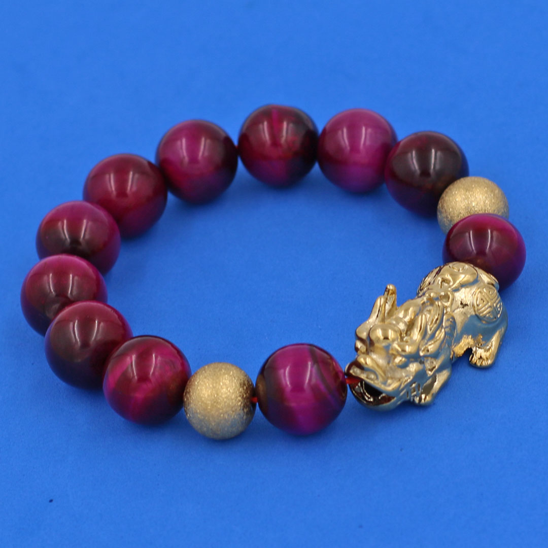 Thông tin sản phẩm : Vòng chuỗi đeo tay đá mắt hổ hồng 14 ly ( size lớn ) charm tỳ hưu và bi inox vàng, vòng tay chuỗi hạt