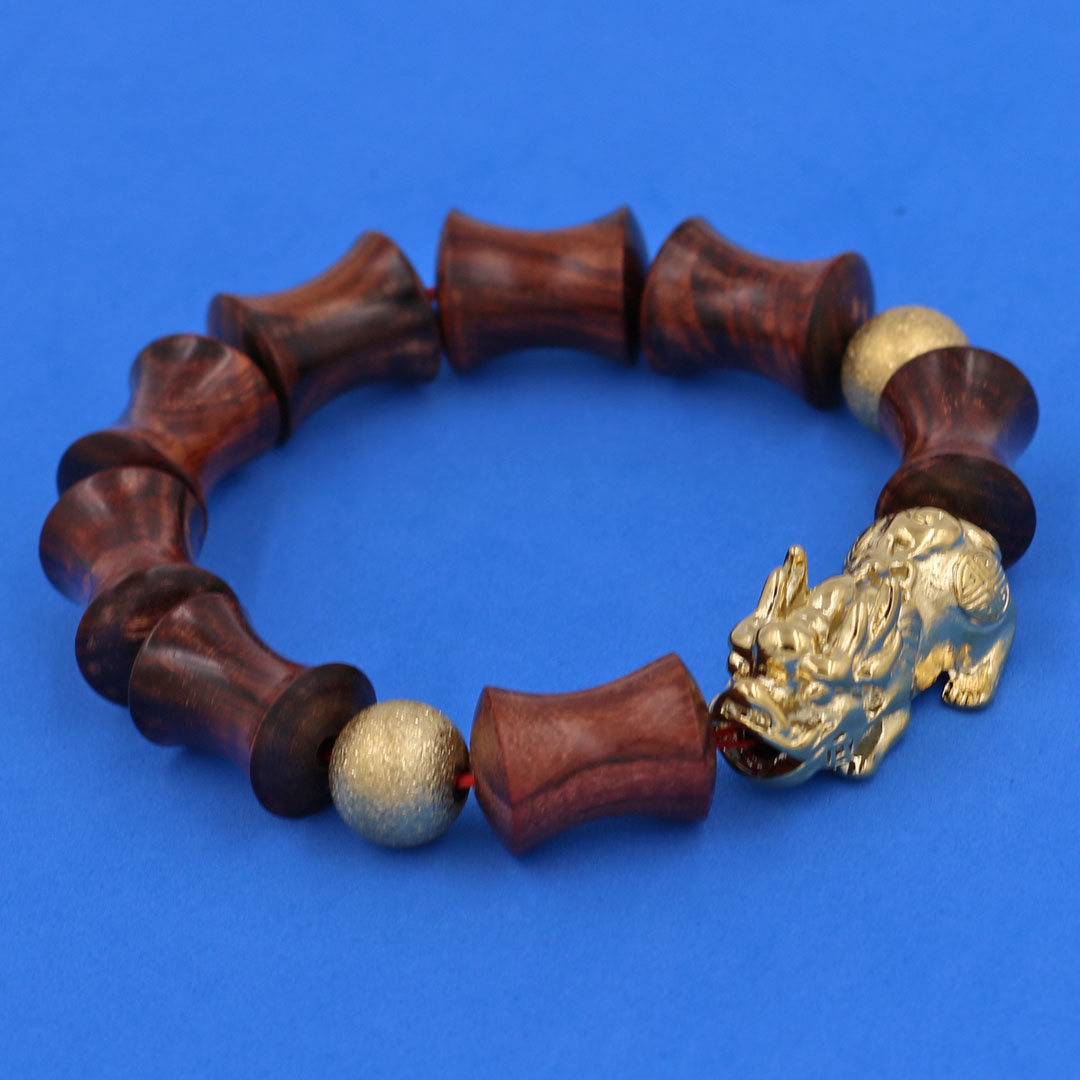 Thông tin sản phẩm : Vòng chuỗi đeo tay gỗ tử đàn ống tre ( size lớn ) charm tỳ hưu và bi inox vàng, vòng tay chuỗi hạt