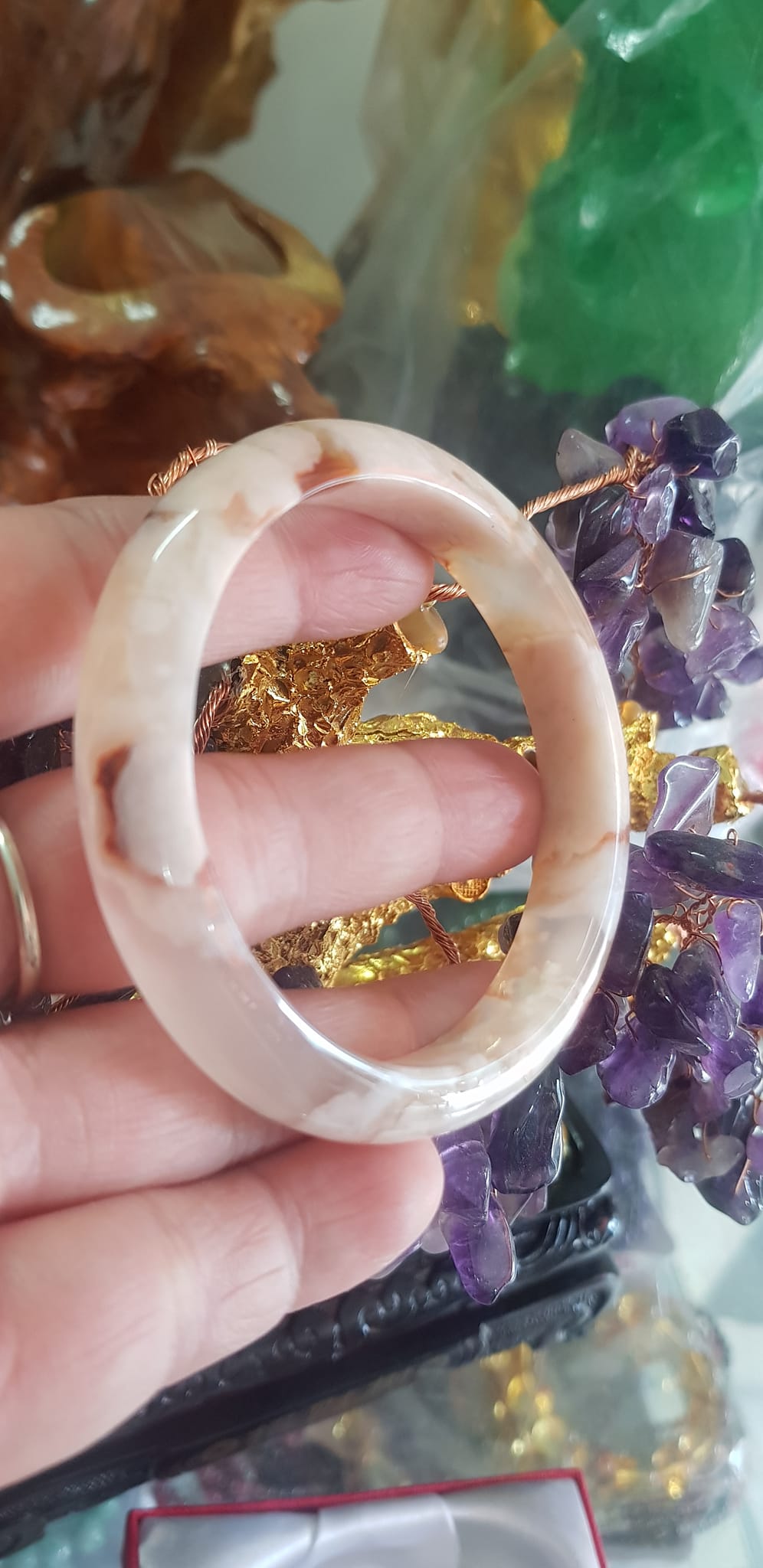 Vòng đeo tay Nữ Bản Hẹ Đá Mã Não Hoa Rau Câu 53mm x Cao 10mm x dầy 7mm bóng đẹp nữ 50kg - 53kg đeo ạ