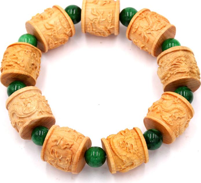 Kích thước : 9 hạt gỗ khắc hình trụ rồng 20mm x 20mm, đá cẩm thạch đông ninh : 8 ly, vòng chuỗi dài 252mm
