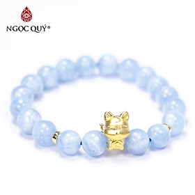 ✨Vòng tay đá Aquamarine phối hồ ly mạ vàng size hạt 9mm mệnh thủy, mộc - Ngọc Quý Gemstones