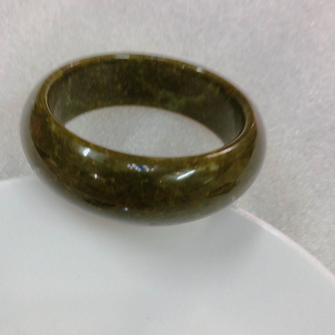 Vòng Tay Nữ Ngọc Cẩm Thạch tự nhiên TR LÝ 49mm x cọng 7,2mm ngọc trắng bóng điểm lý xanh rêu