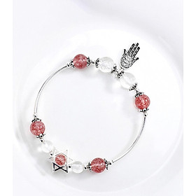 Vòng tay đá thạch anh dâu phối charm - Hợp Mệnh Hỏa & Thổ [ Ngọc Quý ]
