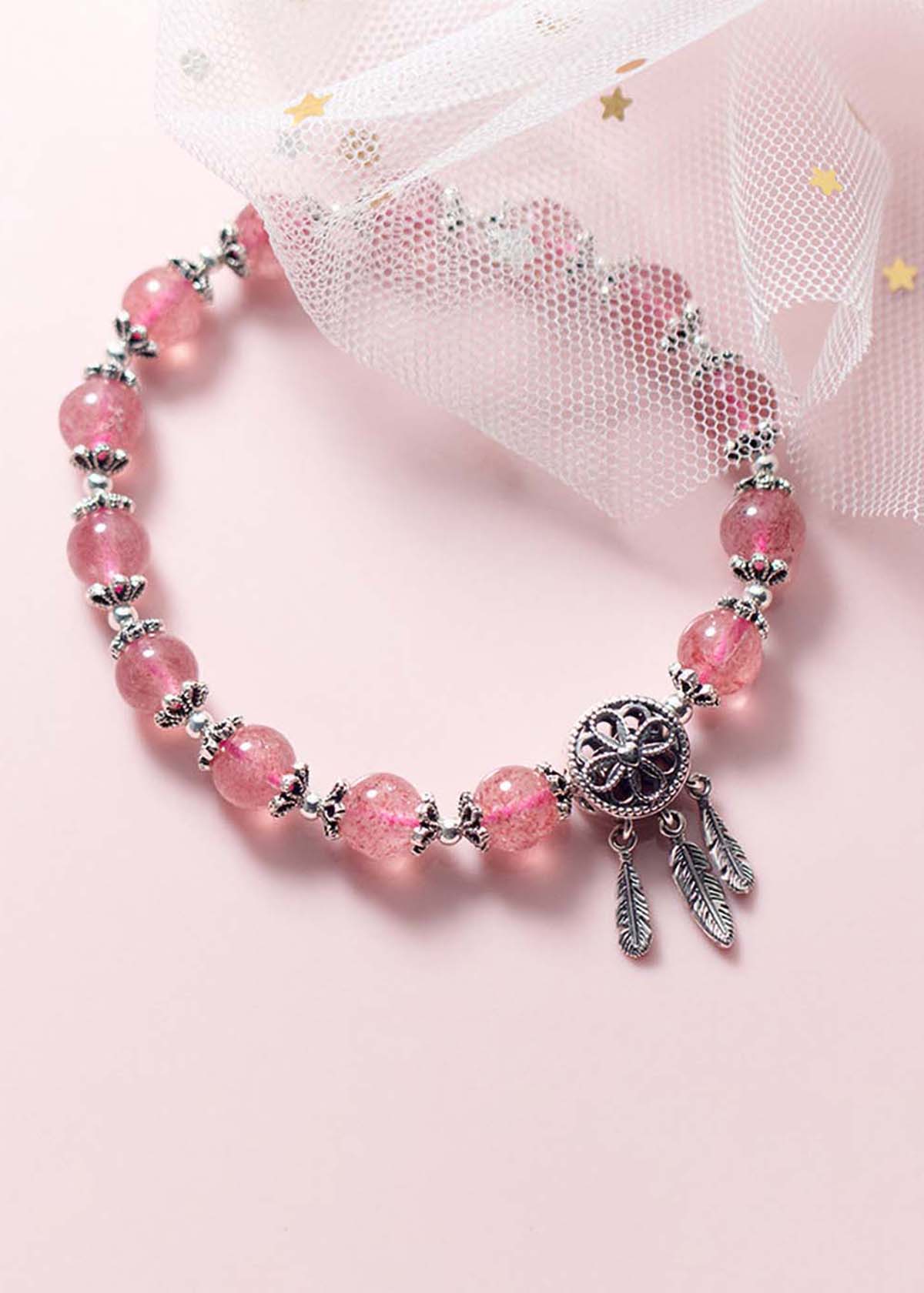 ✨Vòng tay đá thạch anh dâu phối Dreamcatcher mệnh hỏa, thổ - Ngọc Quý Gemstones