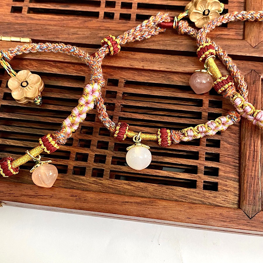 ✨VÒNG TAY DÂY NGŨ SẮC HOA ĐÀO VÀ TRÁI ĐÀO TÌNH DUYÊN VẸN TRÒN
