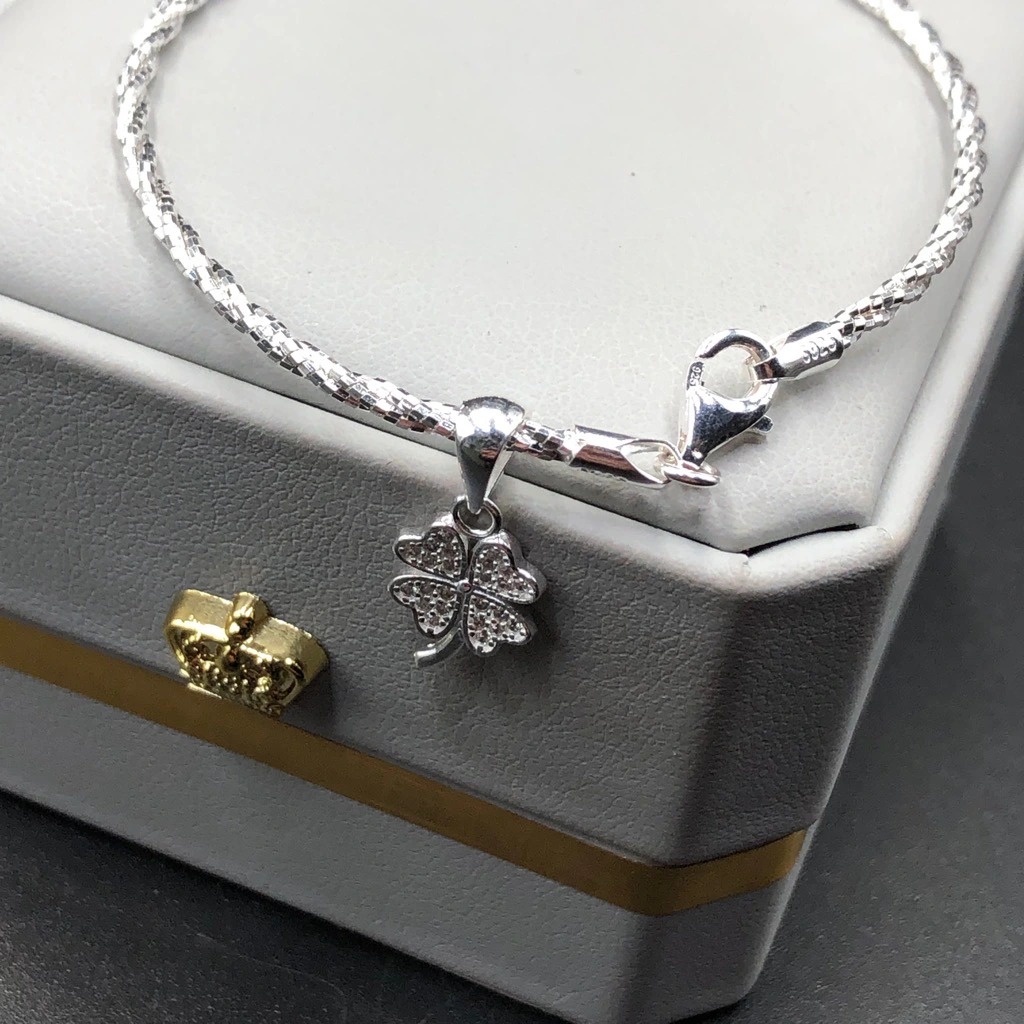 Lắc Tay Nữ Bạc 925 Cỏ 4 Lá May Mắn BẠC HIỂU MINH LTU609