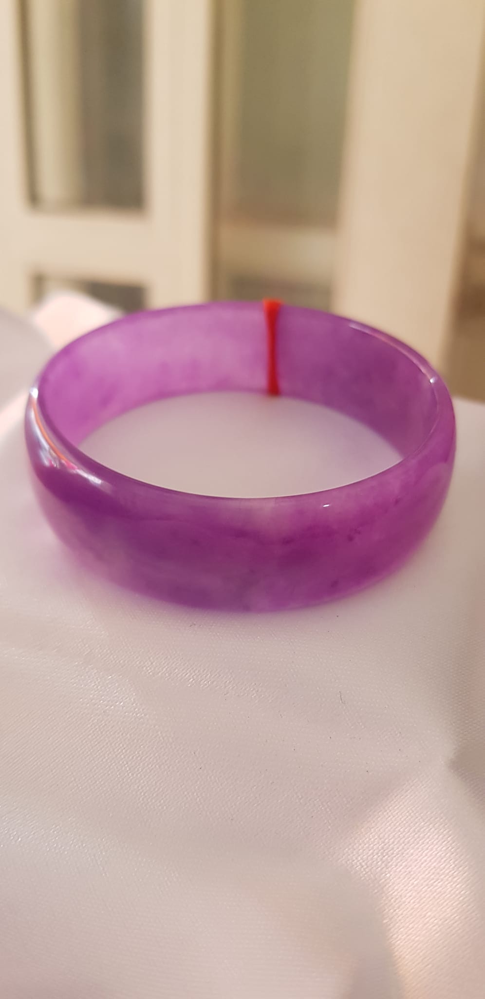 ✨Vòng Tay Nữ Đá Cẩm Thạch Mới Bản Hẹ Tím rịm đều quá đẹp Ni 52mm x Cao16mm x Dầy 4mm Chất liệu đá cẩm thạch Màu tím tịm nhẹ đều bóng đẹp quá Size vòng 52mm Nữ mạng hỏa mạng thổ 47kg đến 50kg đeo ạ