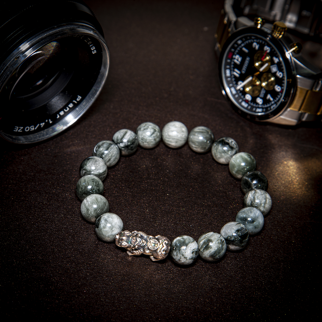Vòng Thạch Anh Xanh Phối Tỳ Hưu Treo Thạch anh xanh Đá Thạch Anh Xanh (Green Aventurine) còn được gọi là “Đá của Cơ Hội”, nó được cho là loại đá mang lại may mắn