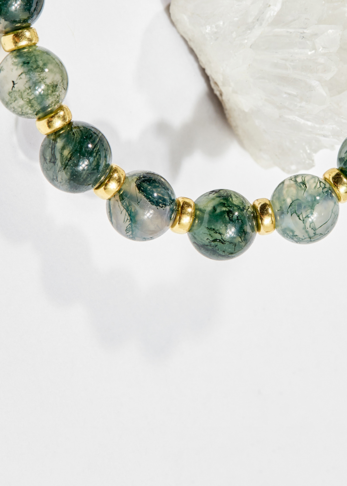 Vòng tay đá băng ngọc thủy tảo phối charm bạc - Hợp mệnh mộc, hỏa | Ngọc Quý Gemstones |