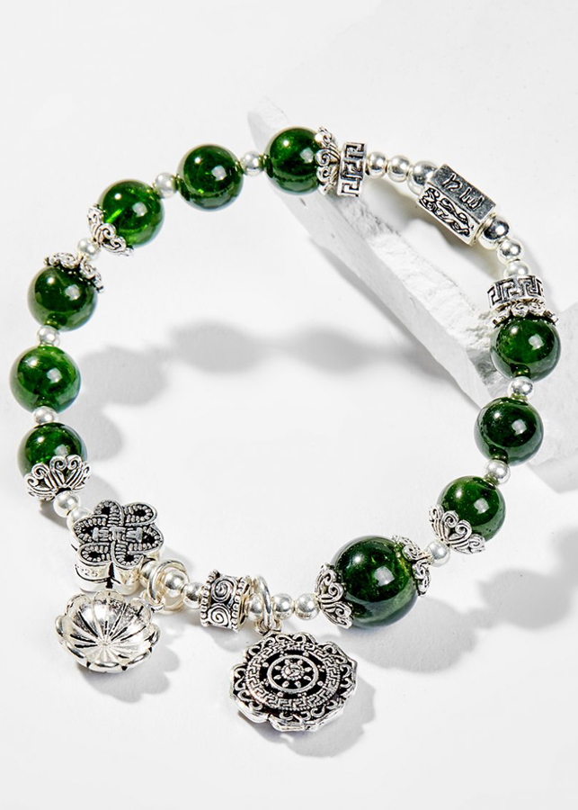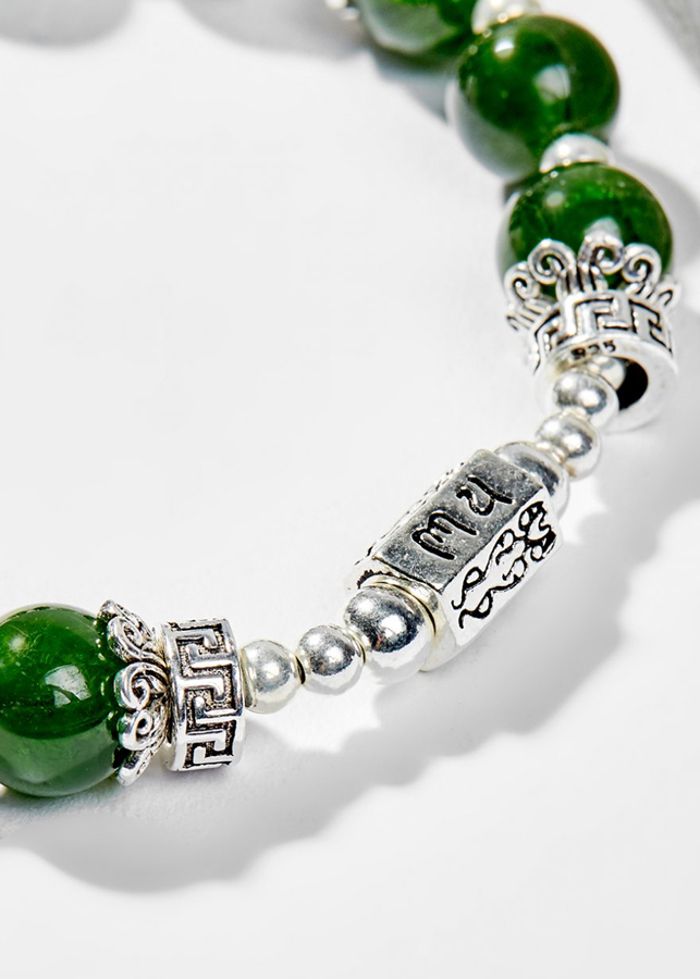 Từ lâu người ta đã biết đến đá Diopside là một tinh thể hoàn hảo cho những ai có niềm đam mê mãnh liệt trong sự chăm sóc sự thịnh vượng và vận mệnh của mình. Hỗ trợ trong việc kết nối với vũ trụ, giúp bạn luôn ở trạng thái cân bằng cả về thể chất lẫn tinh thần. Vòng Tay Phong Thủy Nữ Đá Diopside Phối Charm Hoa Vintage (7mm) Mệnh Mộc, Hỏa được làm từ đá Diopside.