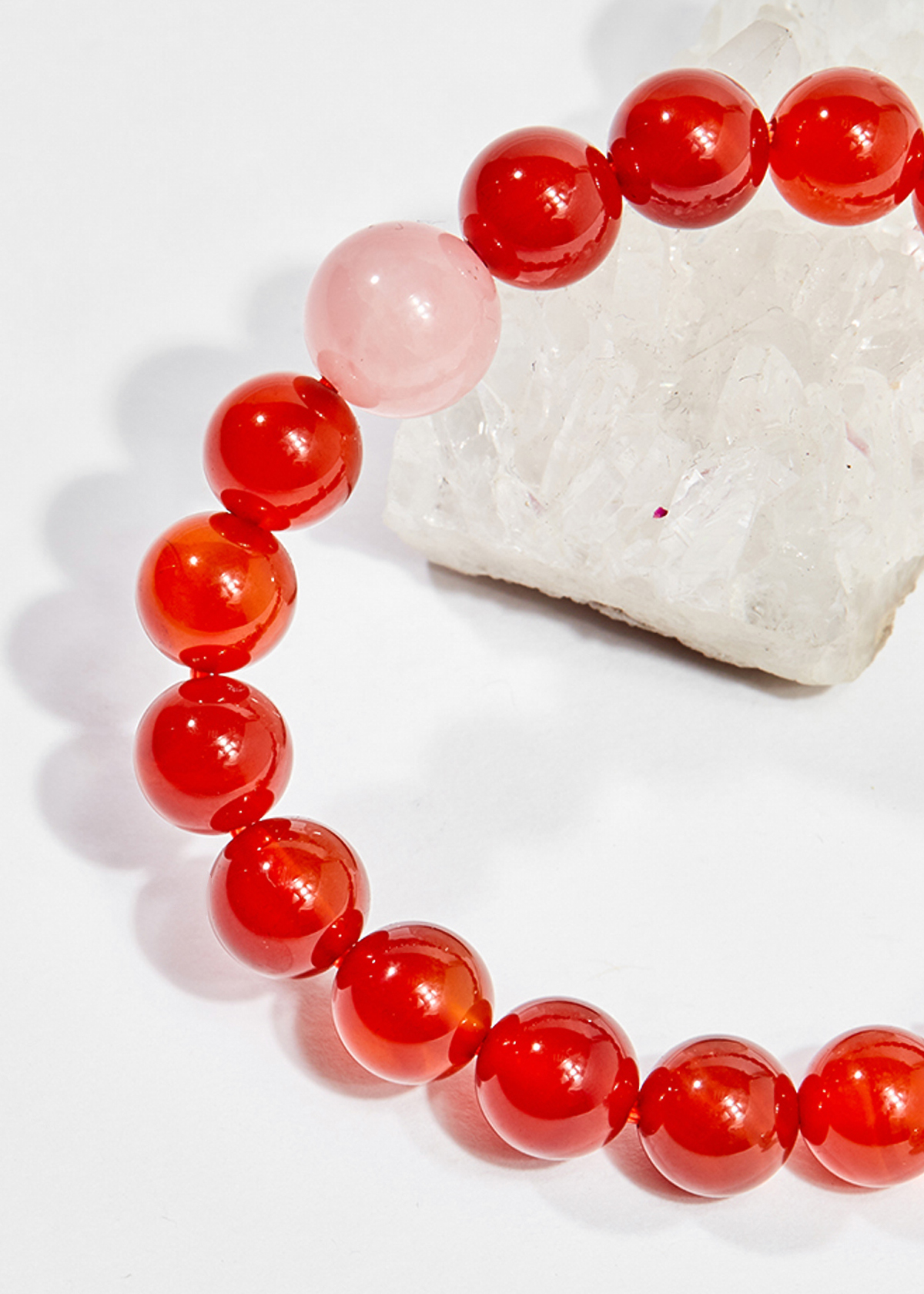 ✨Vòng tay phong thủy nữ đá mã não đỏ mix thạch anh hồng 8mm mệnh hỏa , thổ - Ngọc Quý Gemstones