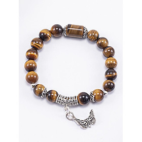 Vòng Tay Phong Thủy Nữ Đá Mắt Hổ Vàng Nâu Phối Charm Bướm Bạc (8mm) Mệnh Thổ, Kim