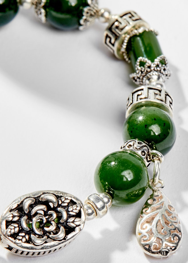 Vòng tay đá ngọc bích nephrite phối charm bạc - Hợp mệnh mộc, hỏa | Ngọc Quý Gemstones |