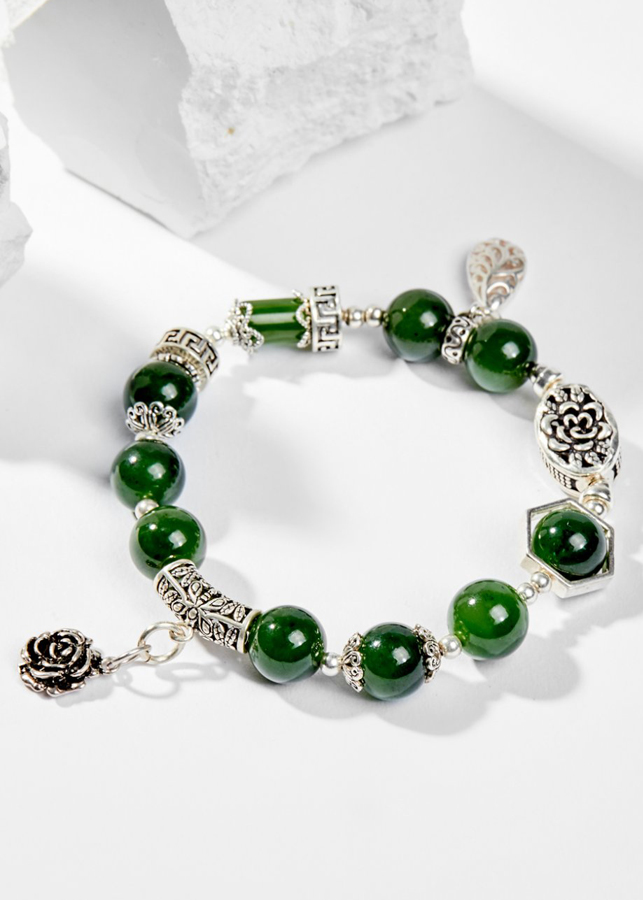 Vòng tay đá ngọc bích phối charm bạc - Hợp mệnh mộc, mệnh hỏa | Ngọc Quý Gemstones |
