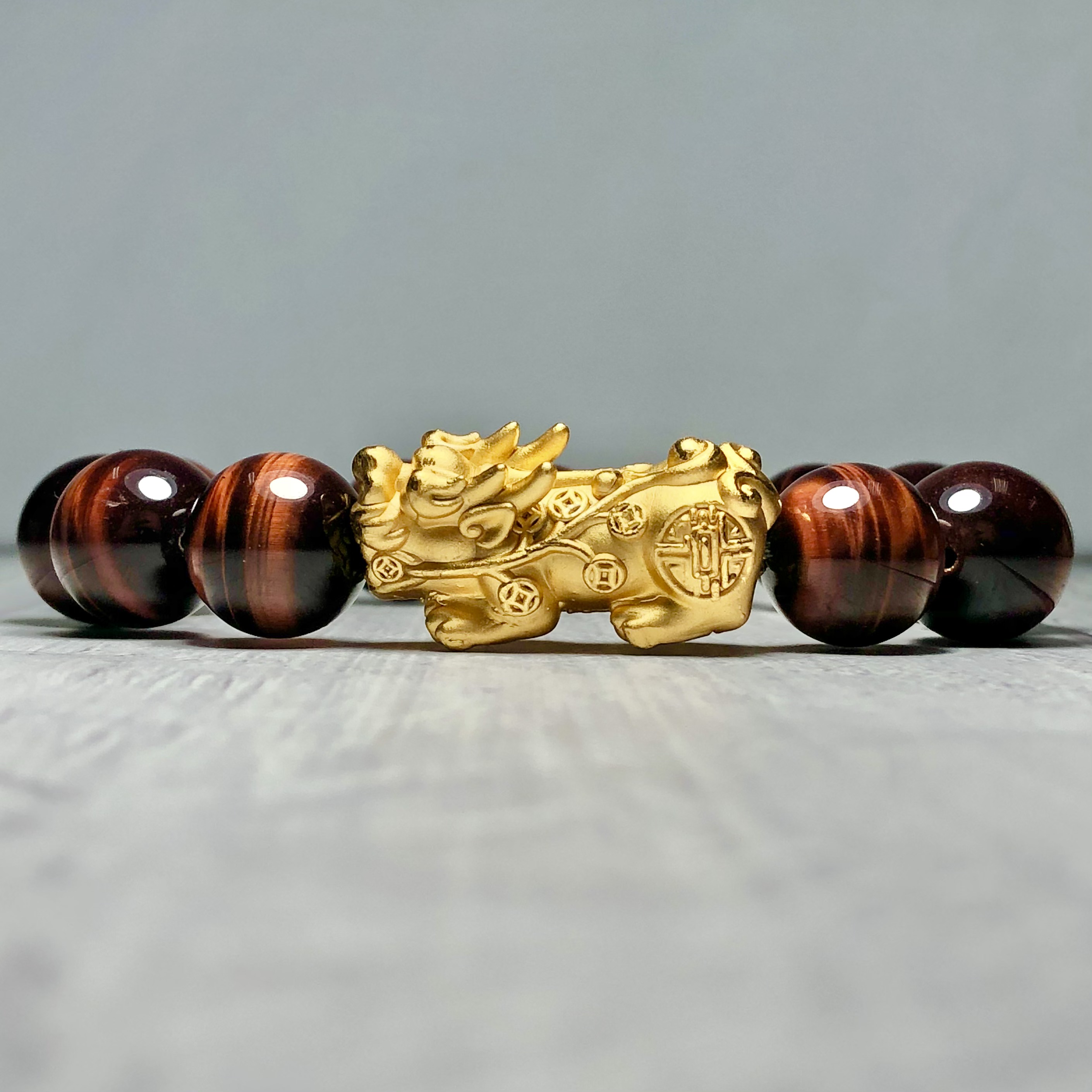 Vòng tay phong thủy đá mắt hổ nâu đỏ phối tỳ hưu - Hợp mệnh thổ, mệnh hỏa | Ngọc Quý Gemstones |