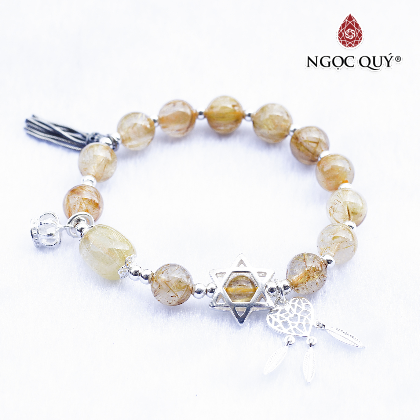 Thạch Anh Tóc Vàng có màu sắc rực rỡ mê hoặc lòng người, cộng với sự quý hiếm khó tìm trong tự nhiên, là loại đá có giá trị cao nhất của dòng họ Thạch Anh. Đeo vòng tay Đá Thạch Anh Tóc Vàng vừa thể hiện được cá tính và nét quyến rũ của bản thân, vừa mang nhiều ý nghĩa về sức khỏe và phong thủy tốt lành.