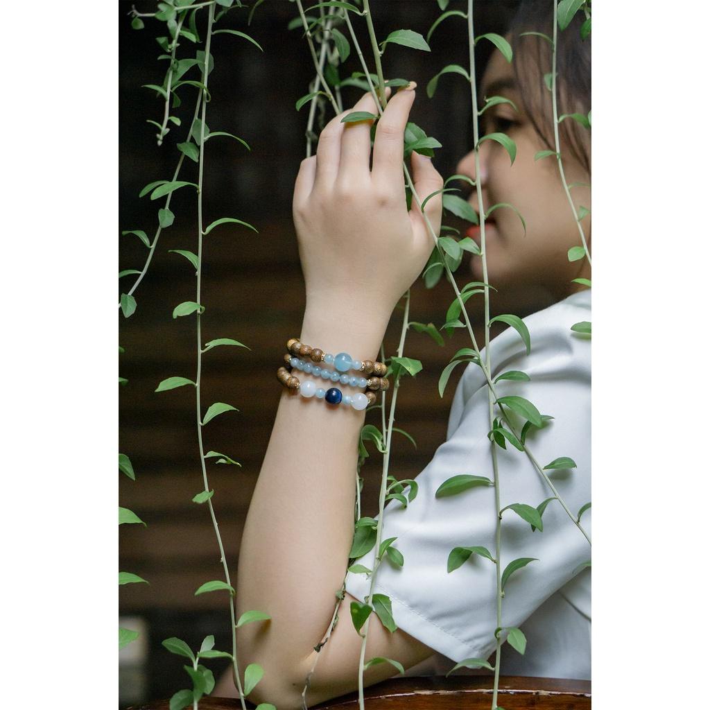 Chuỗi đá Aquamarine (viên ngọc biển xanh) 2 vòng mix bạc 925 - Made by Tường Anh 🥰