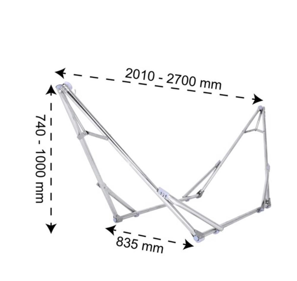 Khung võng xếp bằng ống thép: sơn tĩnh điện, đường kính 27.0mm, chiều dày 0.9mm, 4 thanh chống cong:điều chỉnh độ dài & độ cao của khung võng. Kích thước sử dụng: trung bình 210
