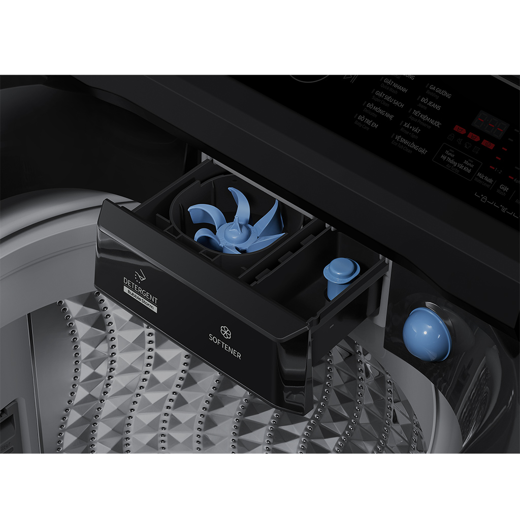 Đặc điểm nổi bật Tự động phân bổ nước giặt xả chính xác theo khối lượng đồ giúp tiết kiệm chất tẩy Ngăn chứa nước giặt xả lớn, chỉ cần đổ đầy 1 lần có