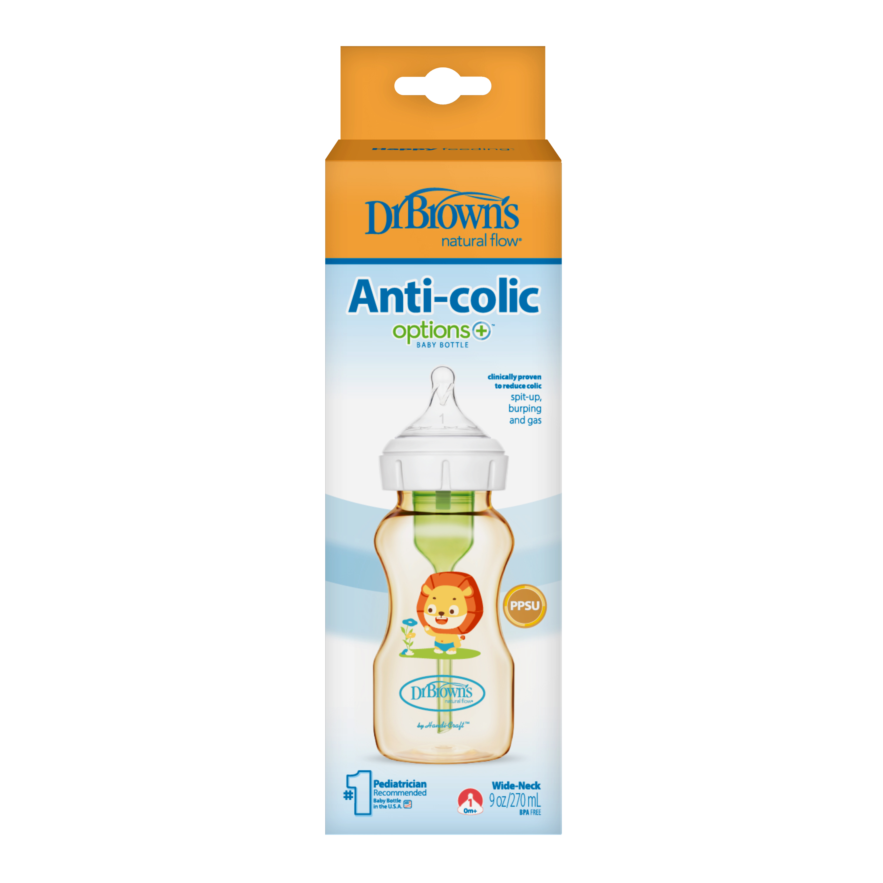 ✨[ WB91018-CH ] Bình sữa Dr.Brown's cổ rộng, nhựa PPSU, 270ml, họa tiết hình con sư tử