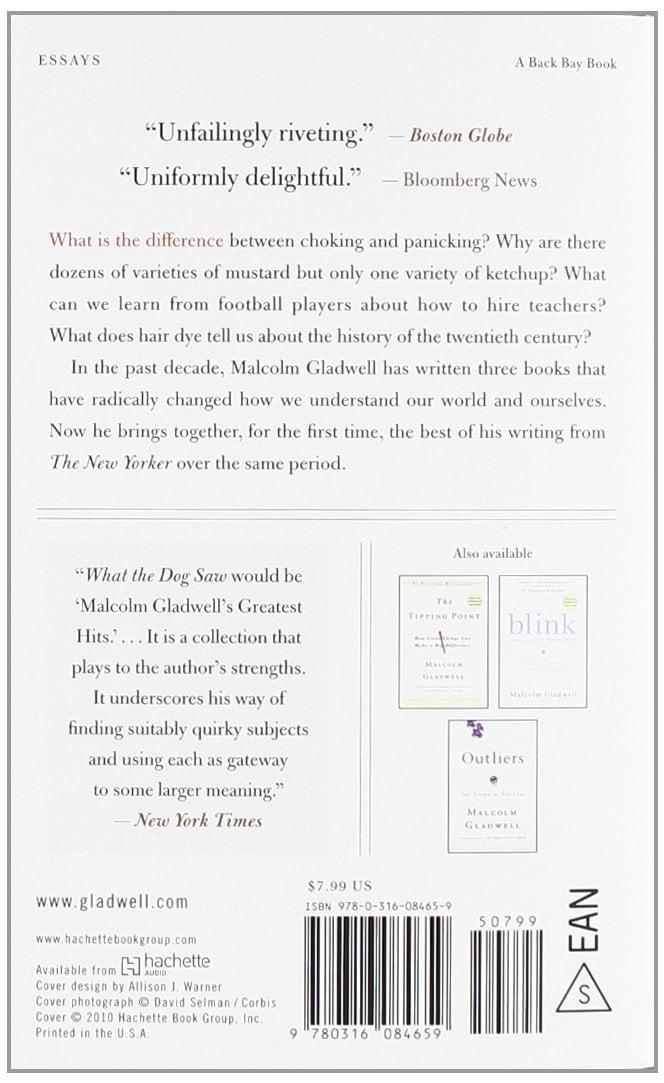 "Good writing," Gladwell says in his preface, "does not succeed or fail on the strength of its ability to persuade. It succeeds or fails on the strength of its ability to engage you, to make you think, to give you a glimpse into someone else's head." What the Dog Saw is yet another example of the buoyant spirit and unflagging curiosity that have made Malcolm Gladwell our most brilliant investigator of the hidden extraordinary.