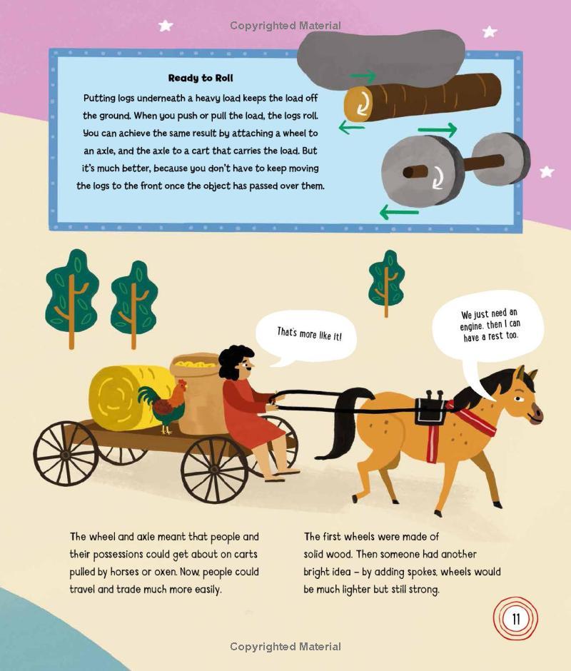 Discover how wheels make the world go round! This fact-packed book takes young readers on a colorful journey through the subject of wheels of all kinds, from Roman chariots to driverless cars, via roller coasters, cogs and gears, monster trucks, and much more.