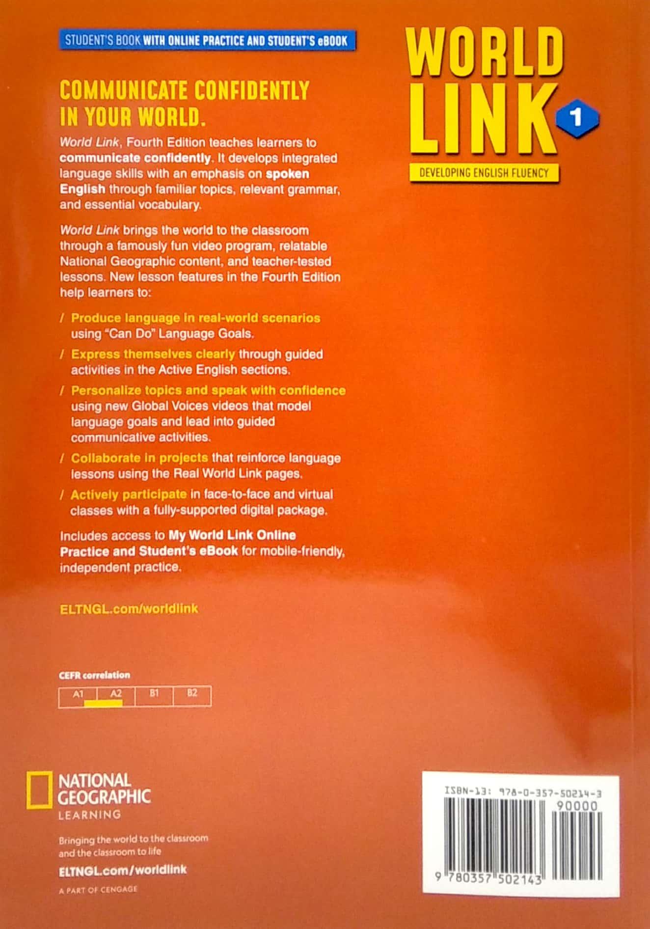 World Link, Fourth Edition teaches learners to communicate confidently. It develops integrated language skills with an emphasis on spoken English through familiar topics, relevant grammar, and essential vocabulary. World Link brings the world to the classroom through a famously fun video program, relatable National Geographic content, and teacher-tested lessons.