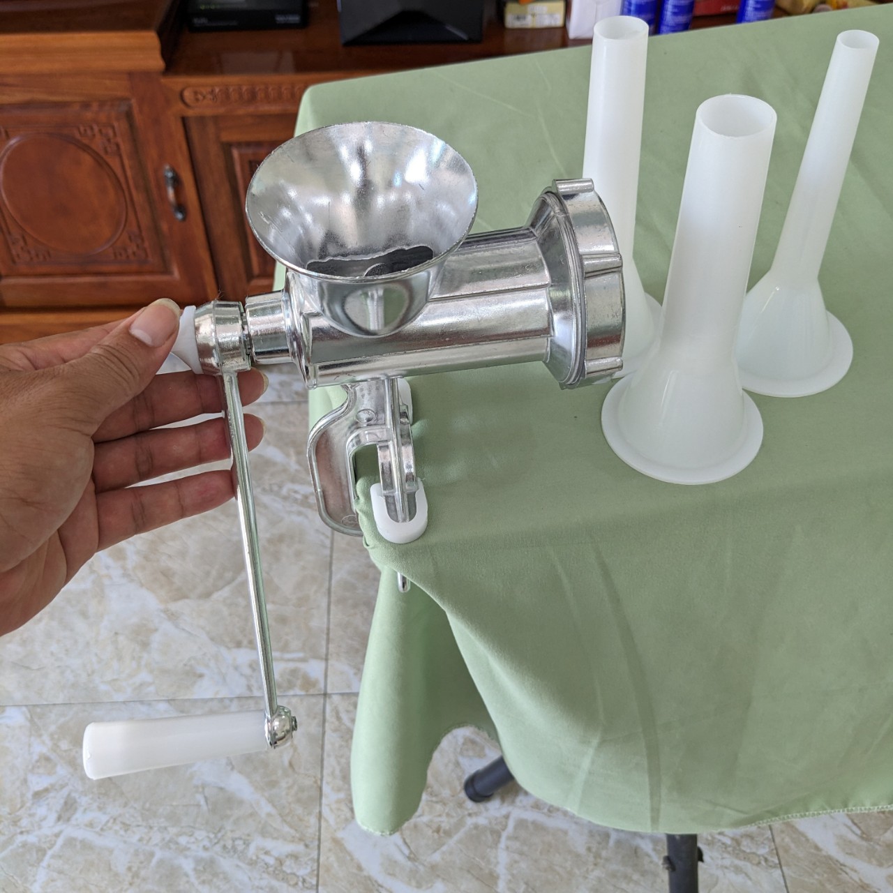 ✨Xay Thịt Quay Tay Bằng Gang Size 10 - Sản Phẩm Cao Cấp Kèm 3 Ống Nhồi Xúc Xích