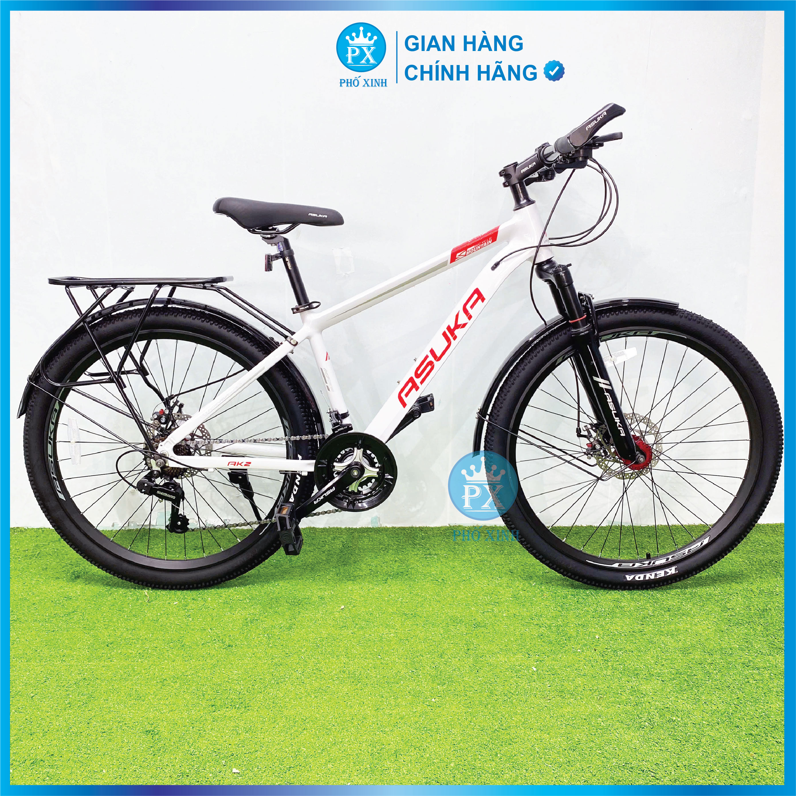 Mua tại TiktokXE ĐẠP ĐỊA HÌNH ASUKA BÁNH 26 inch KHUNG NHÔM ( mẫu mới) ️ Khung: Nhôm ALu ️ Càng/Phuộc: Giảm xóc , có khoá hành trình tuỳ chỉnh ️ Tay đề: S H I M A N O 3*7 ( 21 tốc độ) ️ Gạt đĩa: S H I M A N O TOURNEY ️ Củ đề: S H I M A N O TOURNEY ️ Trục giữa: bạc đạn ️ Phanh: Phanh đĩa cơ nhôm ️ Vành: Nhôm 2 lớp ️ Mayer: nhôm ️ Tay lái/Ghi-đông: thép ️ Pô-tăng: Nhôm ️ Cọc yên: Nhôm ️ Lốp : K E N D A 26