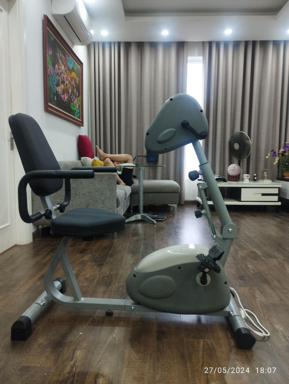 * THÔNG TIN CỦA SẢN PHẨM: Màu sắc: Xám Kích thước sản phẩm: 110 x 85 x 45cm Trọng lượng sản phẩm: 16 kg Có đồng hồ và cảm ứng nhịp tim * PHÂN