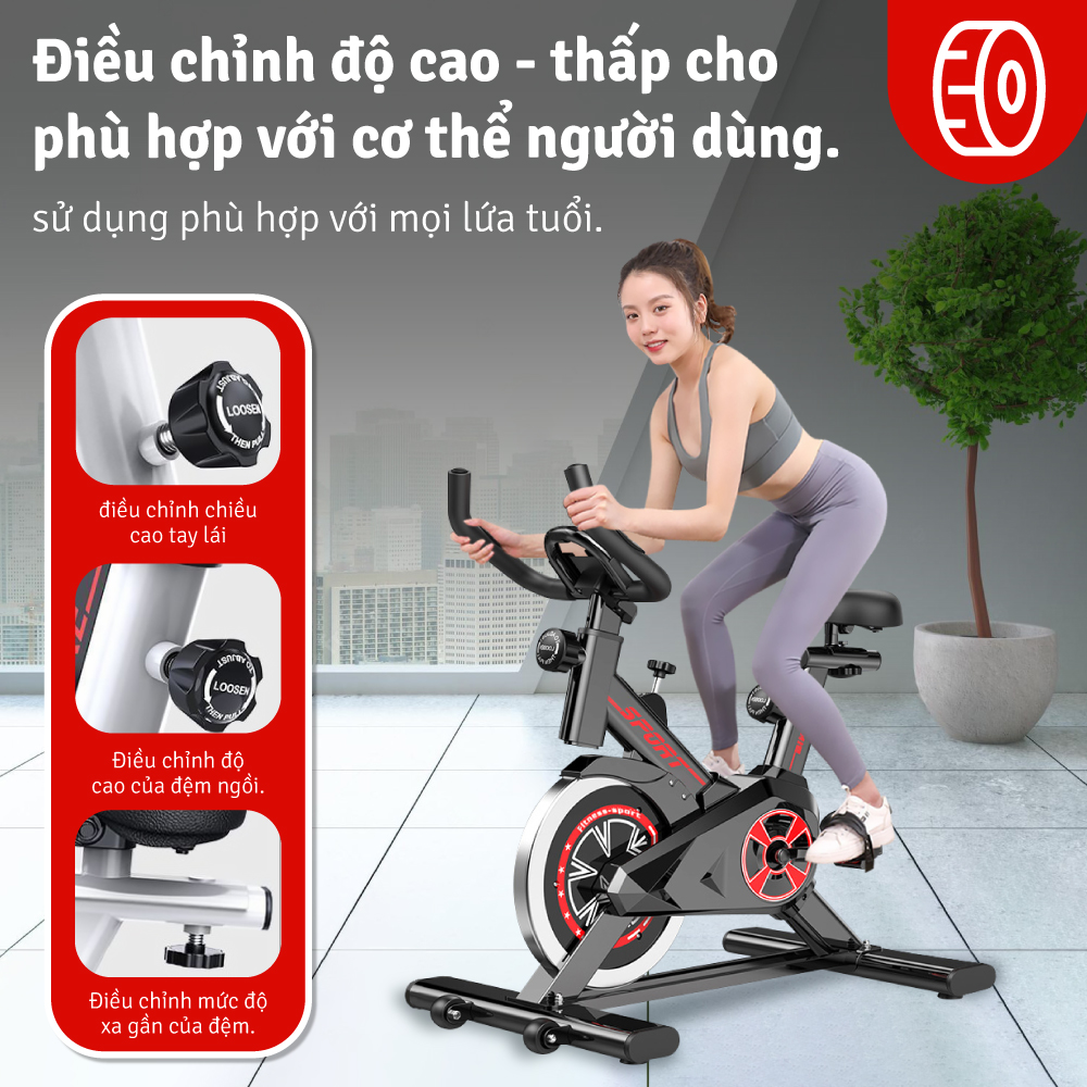 Trọng lượng tối đa người sử dụng: 125kg Cốt thanh tay cầm và yên xe bằng crom Màn hình LED hiển thị trực quan, dễ dàng quan sát Trang bị giá đựng chai nước và