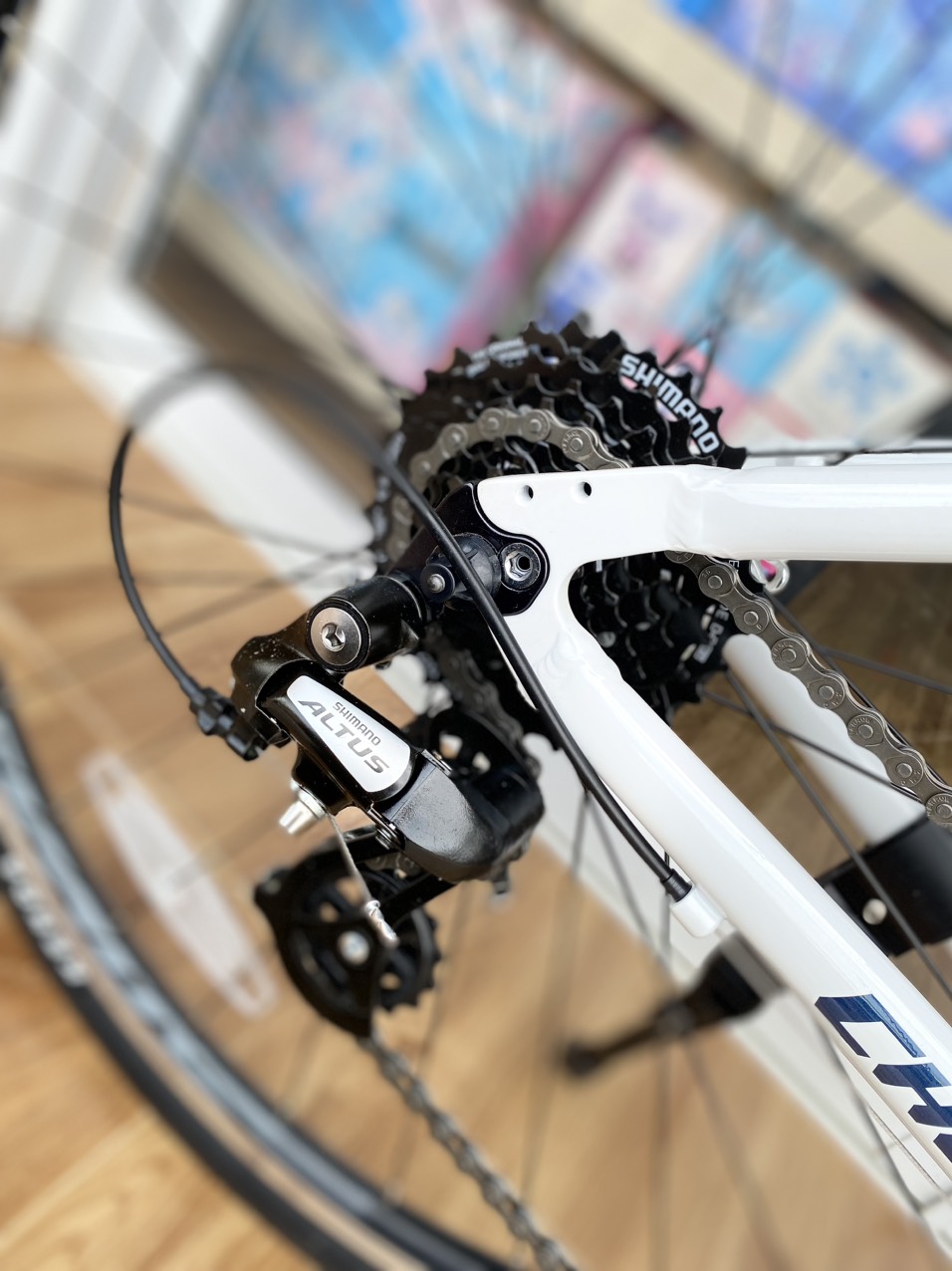 - Khung hợp kim nhôm không mối hàn - Tay đề Shmn 3 đĩa 9 líp ALTUS - Cùi đề Shmn ALTUS - Giò dĩa Prowheel - Gạt đĩa Shmn ALTUS - Phuộc dầu có
